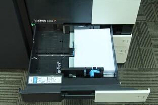 柯尼卡美能達C658標配2個500頁紙盒和手送紙盤,選配更支持側(cè)置的大容量紙柜,最高紙張容量達到6650頁。充足的紙張容量,確保高速輸出的連續(xù)性。