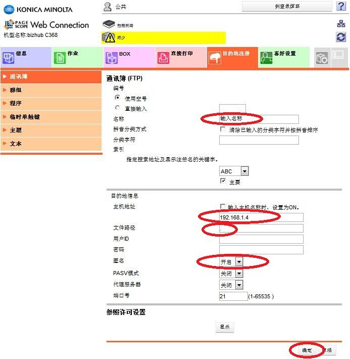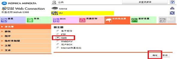1)打開IE,在地址欄中輸入機器的IP地址進入Web Connection