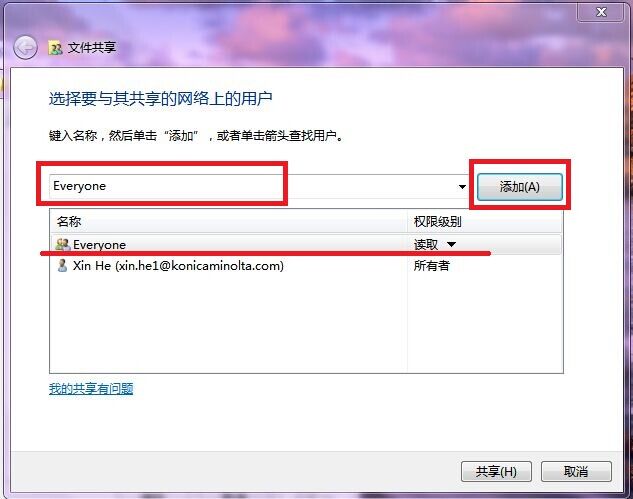1)PC端設置共享文件夾,共享設置everyone的讀取和寫入權