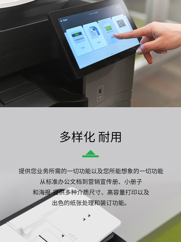 全新 利盟 (Lexmark ) CX950se彩色多功能一體機融合尖端科技,以安全可靠的多功能性、優異卓越的可持續性和超乎想象的易用性,為您開啟 A3 多功能打印的新篇章。逼真的打印效果,最高 25 頁/分鐘* 的打印速度,助您多快好省完成工作。25 厘米彩色觸摸屏直觀易操作,單通道雙面掃描輕松省時間。