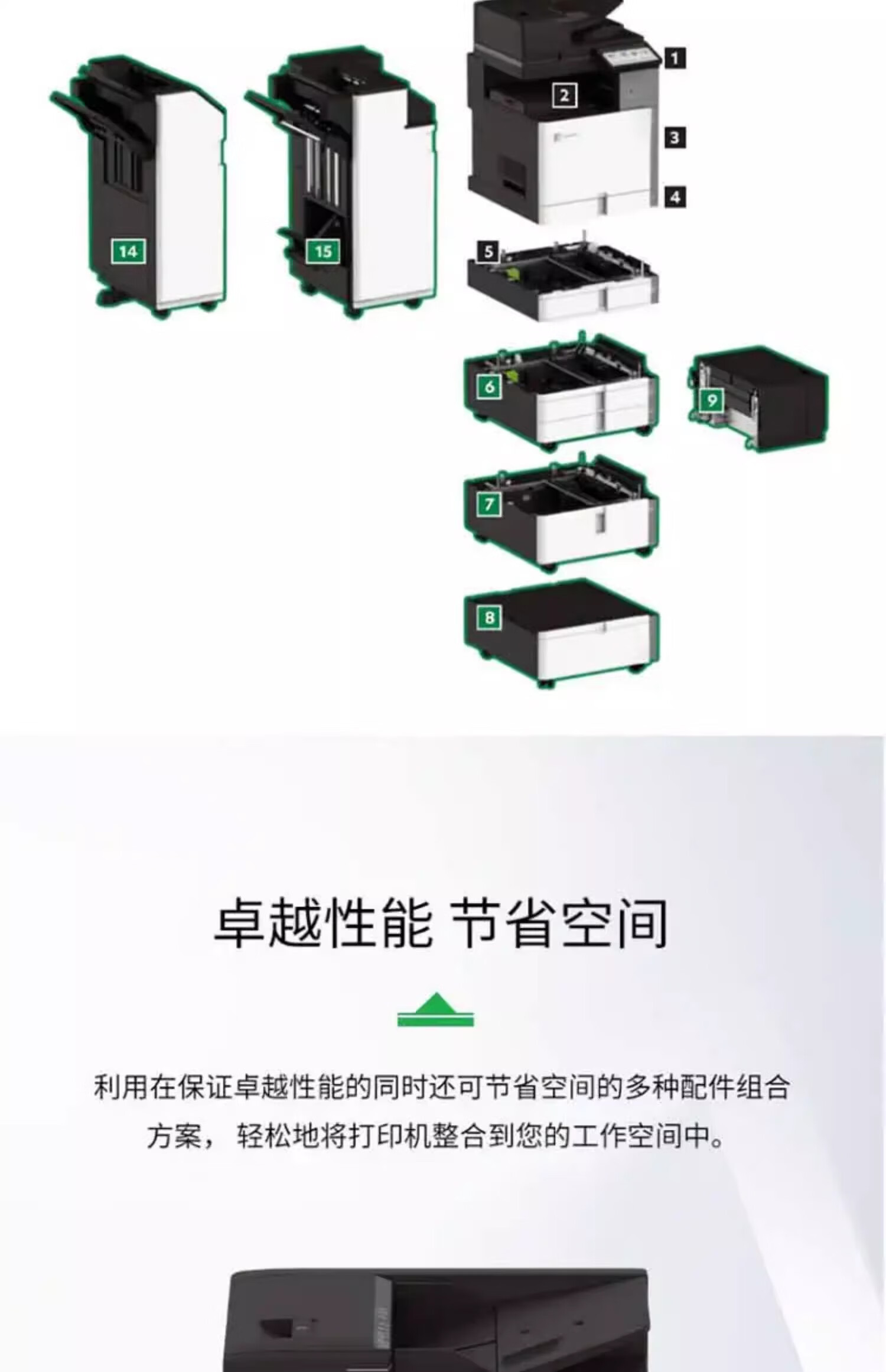利盟(Lexmark)CX961se復印機 彩色激光多功能數碼復合機打印機 35頁/分鐘 輸稿器 雙紙盒參數圖片